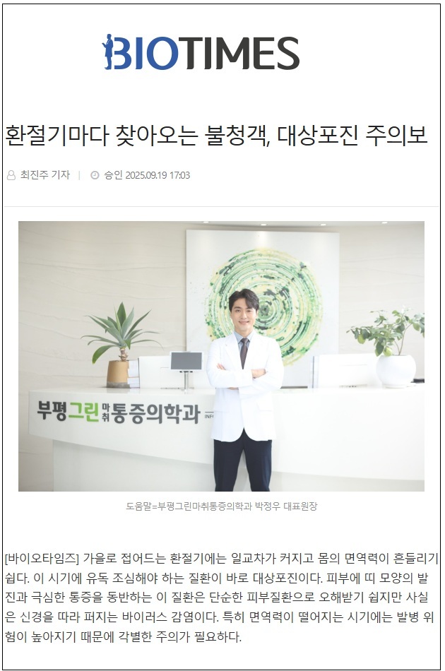 환절기마다 찾아오는 불청객, 대상포진 주의보